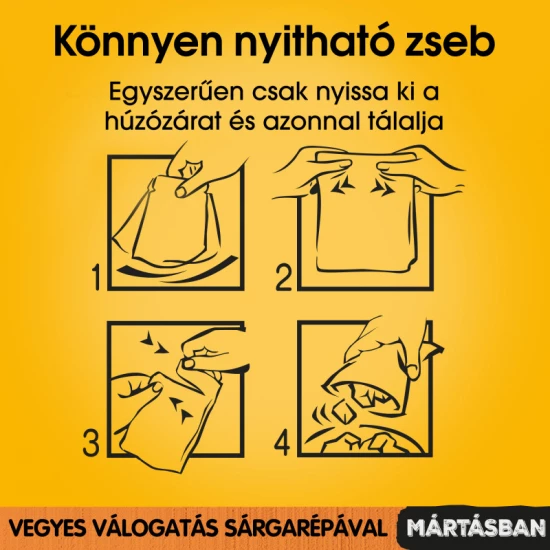 Összetevők : Marhával és báránnyal: hús és állati származékok (39%, ebből 4% marha, 4% bárány), válogatott gabonafélék, ásványi anyagok, növényi eredetű származékok (ebből 0,5% szárított répapép), olajok és zsírok (ebből 0,5% napraforgóolaj), növényi fehérje kivonatok Pulykával és sárgarépával: hús és állati származékok (39%, ebből 4% pulyka), zöldségek (4% sárgarépa), válogatott gabonafélék, ásványi anyagok, növényi eredetű származákok (ebből 0,5% szárított répapép), olajok és zsírok (ebből 0,5% napraforgóolaj), növényi fehérje kivonatok Analitikai összetevők: Fehérje 7%, zsír 6%, szervetlen anyag 2%, nyersrost 0,3%, nedvesség 82,5%, kálcium 0,35. Tápértékkel rendelkező adalékanyagok: D3-vitamin 150 NE, E-vitamin 50 mg, kálcium-jodát 0,39mg, réz-szulfát pentahidrát 5,7 mg, vas-szulfát monohidrát 10mg, mangán-szulfát monohidrát 5,6 mg, cink-szulfát monohidrát 107 mg. Etetési útmutató: Étrendváltáskor érdemes bizonyos átállási időt hagyni, hogy kedvence alkalmazkodjon az új eledelhez. Az etetési mennyiség kialakításakor vegye figyelembe macskája igényét. Átlagosnál nagyobb testsúlyú macska esetében csökkentse a napi etetési mennyiséget. Mindig gondoskodjon megfelelő mennyiségű friss ivóvízről kisállata számára.